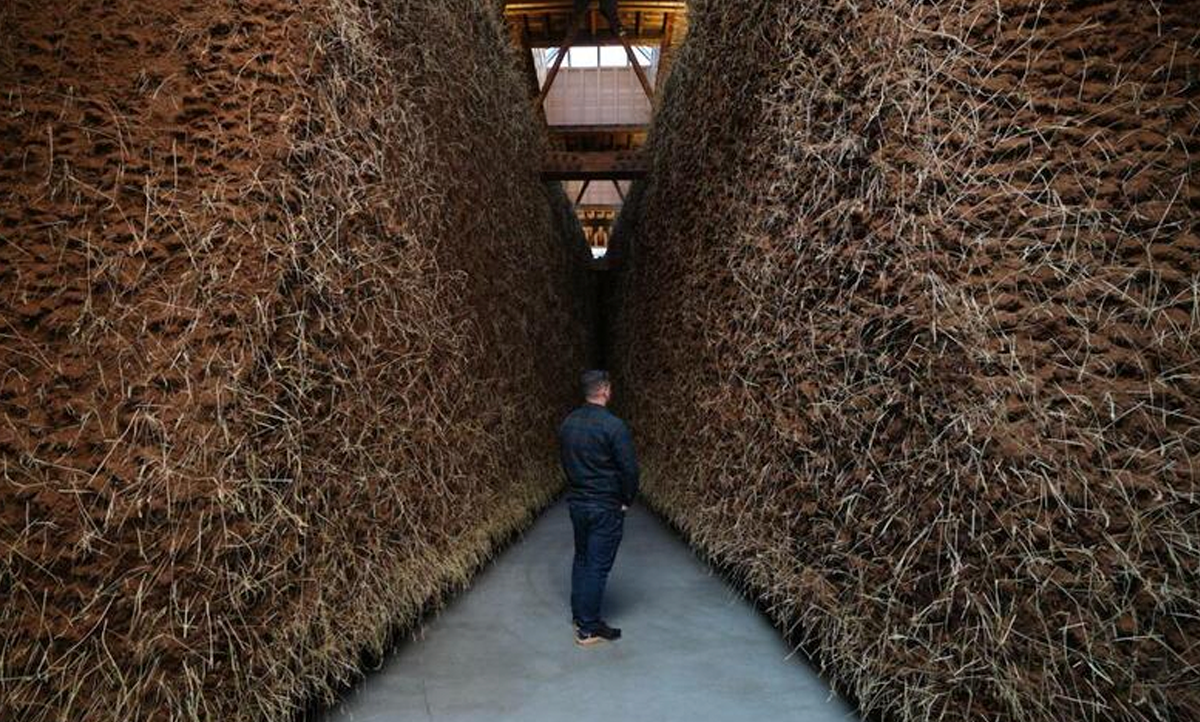 La obra se basa en cosmovisiones andinas y propone una reflexión sobre la relación entre los cuerpos y la tierra. Construida con materiales como arcilla, heno y semillas, genera una experiencia sensorial que incorpora olores y texturas, invitando a repensar el vínculo con el entorno natural.